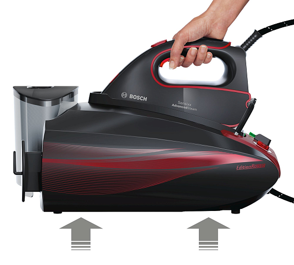 Мощная паровая станция Bosch TDS 373118 P оснащена автоматической программой i-Temp Advanced, которая адаптирует температуру и паровой удар практически к любому виду ткани. При необходимости разглаживания сложных складок прибор производит 3 интенсивных паровых удара мощностью 320г/мин, так система Ultimate320 PulseSteam гарантирует превосходное качество разглаживания.