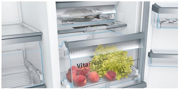Все продукты хранятся дольше и сохраняют свежесть, благодаря зоне свежести VitaFresh plus. Помню, как возвращалась с отпуска, и была приятно удивлена, что оставленные в холодильнике овощи и фрукты остались свежими и аппетитными, как и в день покупки.