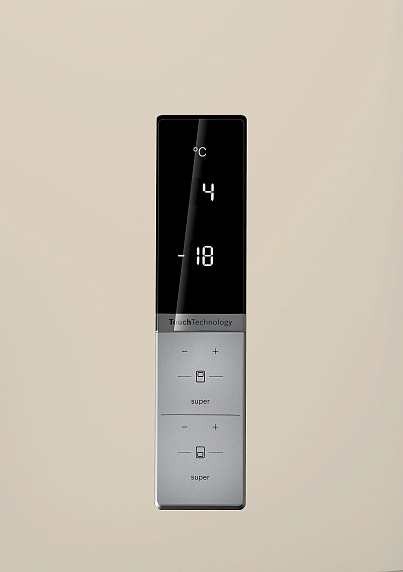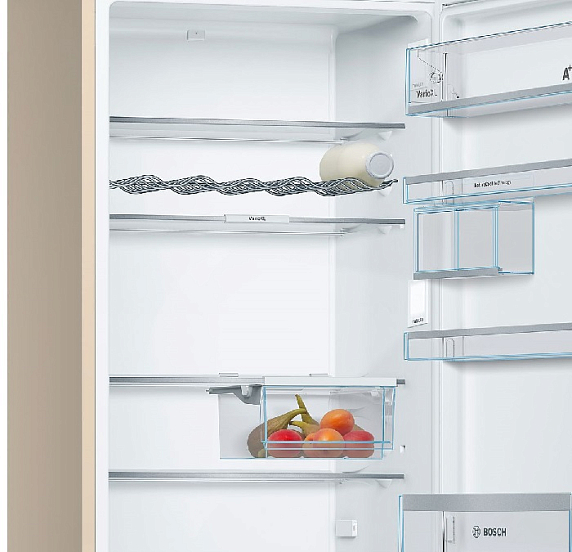 Холодильное отделение укомплектовано 5 полками из стекла, 4 из которых регулируются по высоте, хромированным подвесом для бутылок, зоной свежести и малым ящиком. Управление прибором осуществляется при помощи сенсорной системы TouchControl. Климатический класс модели — SN-T.