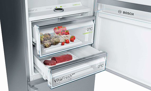 Особенности: точная настройка температуры между −1°C и +3°C, ящик для хранения овощей/фруктов с 3 уровнями влажности, один большой ящик для хранения рыбы/мяса с сухой зоной.