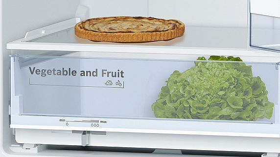 Волнистое дно в контейнере для овощей и фруктов защищает от конденсата, что увеличивает срок хранения. Светодиоды равномерно освещают холодильную камеру и обеспечивают максимальный обзор. Дисплей на двери позволяет с дополнительным комфортом следить за температурой в отделениях и настраивать необходимые параметры.