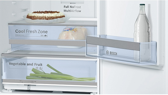 Двухкамерный холодильник Bosch KGN 39XK18 R с системой NoFrost защищает холодильное и морозильное отделение от образования льда, что сокращает время и силы на обслуживание камер. Светодиодное освещение обеспечивает комфортный обзор содержимого. Стеклянные полочки легко чистятся и смотрятся эстетично. Подвес для бутылок экономит полезное пространство. Отделение с пониженной температурой Chiller позволяет сохранять мясо и рыбу свежими до двух раз дольше.