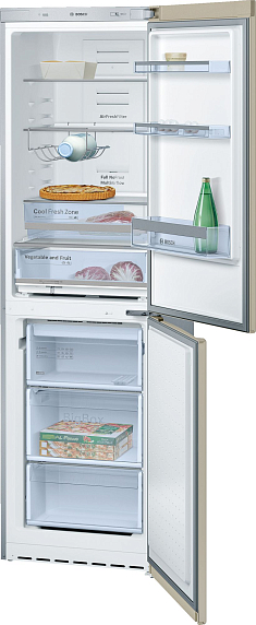 Двухкамерный холодильник KGN 39XV18 R в цвете карамель — элегантная и функциональная модель от Bosch. Многопоточная система охлаждения равномерно распределяет холодный воздух по всему объему камеры. Электронная система управления позволяет устанавливать температуру для холодильного и морозильного отделений с точностью до 1°С. Низкий уровень шума не создает дискомфорт во время работы прибора. Вместительные боксы в морозильном отделении легко выдвигаются даже в заполненном состоянии.
