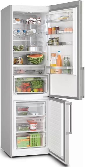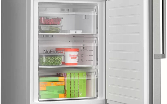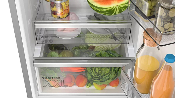 Двухкамерный холодильник Bosch KGN39AIBT имеет систему No Frost благодаря ей на стенках устройства не образуется лед. Светодиодное освещение отлично освещает все полки внутренней камеры. Контейнер VitaFresh позволяет хранить свежие продукты при 0°C температуре.