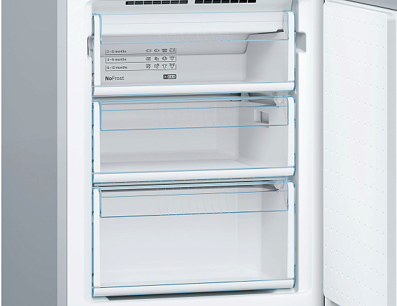Благодаря специальному отделению регулировкой уровня влажности и волнистым дном овощи и фрукты дольше сохраняют свою свежесть. Система NoFrost избавляет от необходимости разморозки.