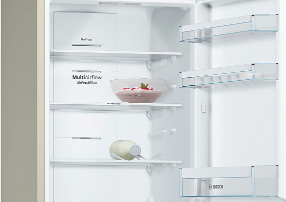 Двухкамерный холодильник Bosch KGN36VK21R имеет одно из самых больших холодильных отделений 237 л среди приборов своего класса высотой около 186 см. Благодаря выдвижным полкам EasyAccess загружать и доставать продукты намного удобнее.