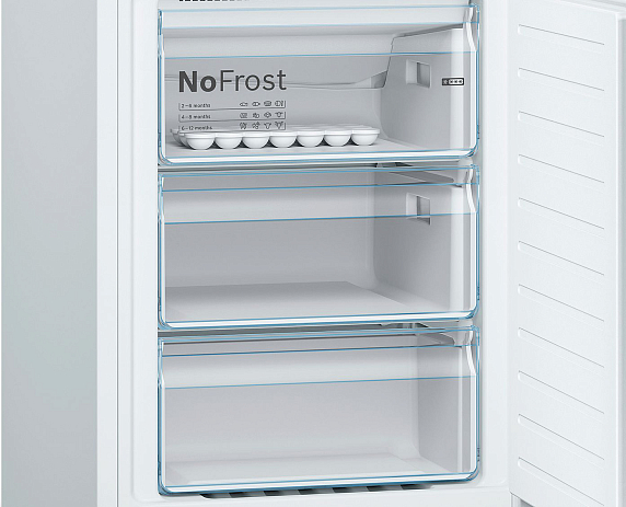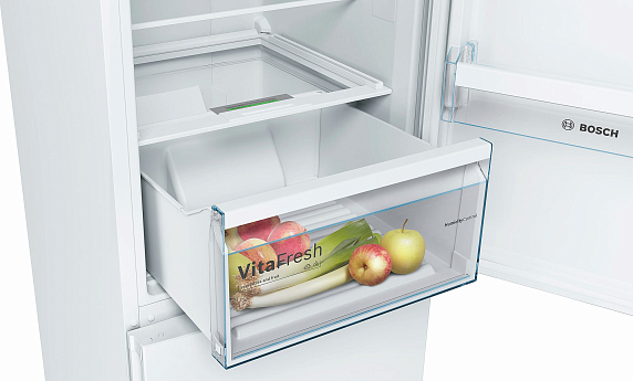 Двухкамерный холодильник Bosch KGN36VW21R — модель с системой охлаждения NoFrost и с зоной свежести VitaFresh. Прибор не нуждается в размораживании, так как влага отводится из морозильной камеры, и наледь просто не образуется. Специальный угольный фильтр AirFresh нейтрализует неприятные запахи и бактерии, не нуждается в замене.