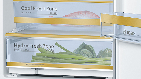 - герметичной зоной HydroFresh — с поддержанием температуры 0-0,75оС и необходимой влажностью для долгого хранения овощей, фруктов и свежеприготовленных блюд;