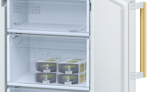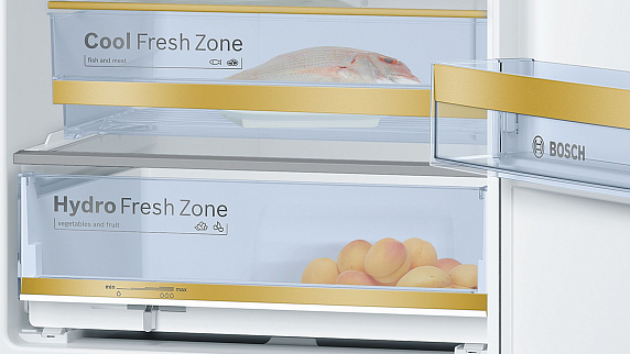 Особенности: точная настройка температуры между −1°C и +3°C, ящик для хранения овощей/фруктов с 3 уровнями влажности, один большой ящик для хранения рыбы/мяса с сухой зоной.