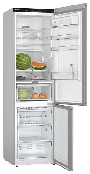 Холодильно-морозильная комбинация Bosch KGN39LB32R с зоной свежести VitaFresh plus сохраняет свежесть продуктов до 2 раз дольше. Прибор с нижним расположением морозильной камеры, который оборудован тремя вместительными боксами для хранения замороженных продуктов. Сенсорное управление обеспечивает точную настройку параметров. Класс энергопотребления A++ — одно из преимуществ модели. Полки из ударопрочного стекла выдерживают большие нагрузки, легко чистятся и смотрятся эстетично. Светодиодная подсветка LED ярко и равномерно освещает пространство холодильника.
