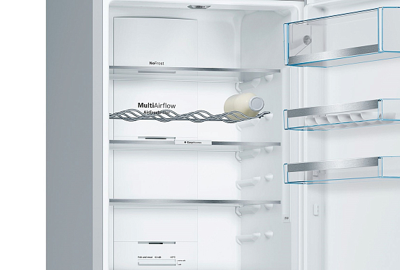 Особенности: настройка температуры около 0°C, ящик для хранения овощей/фруктов с 2 уровнями влажности, 2 ящика для хранения рыбы/мяса на специальных направляющих, которые можно выдвигать оба одновременно или по отдельности.
