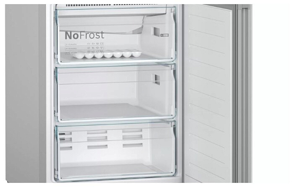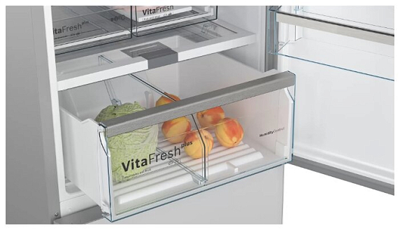 Двухкамерный холодильник Bosch KGN39LW32R выполнен в классическом белом цвете и обладает большой вместимостью при стандартных габаритах. EasyAccess — это система крепления полок из закаленного ударопрочного стекла, которые плавно выдвигаются даже при полной загрузке, чтобы можно было с легкостью достать продукты даже из самого дальнего уголка холодильника.