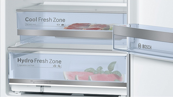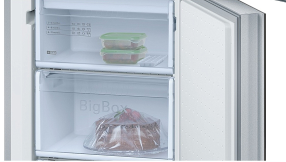 Двухкамерный холодильник KGN39SM10R со встроенными вертикальными ручками — элегантная модель от Bosch. Корпус в цвете нержавеющая сталь гармонирует с любым интерьерным решением. Большой внутренний объем и оптимальное зонирование обеспечивают комфортную эксплуатацию. Морозильная камера оборудована тремя ящиками из прозрачного пластика. Боксы легко выдвигаются даже в заполненном состоянии. Светодиоды равномерно освещают холодильную камеру для удобного обзора. Многопоточная система охлаждения распределяет холодный воздух по всему объему камеры для качественных результатов.
