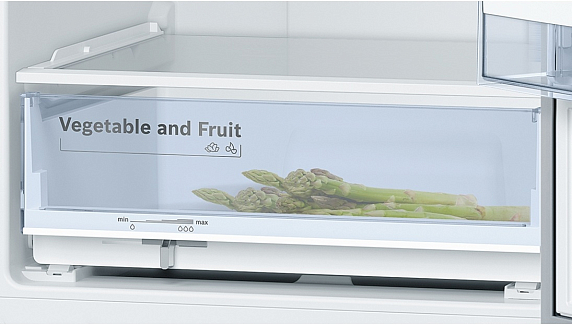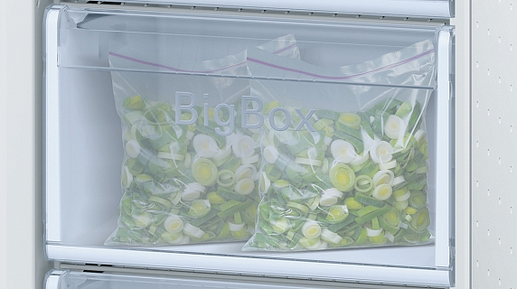 Двухкамерный холодильник KGN39VC14R оснащен системой NoFrost. В камерах не образуется лед и иней, что создает дополнительный комфорт при обслуживании прибора. Хромированный подвес для хранения бутылок экономит полезное пространство. Морозильное отделение располагает тремя вместительными боксами для раздельного хранения мяса, рыбы и овощей. Светодиодная лампа рассчитана на весь срок службы прибора. LED-освещение обеспечивает максимальный обзор содержимого и отличается низким потреблением электроэнергии.