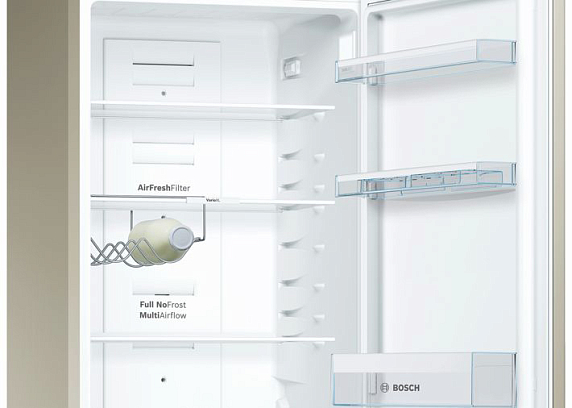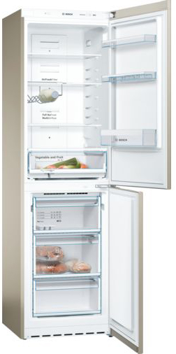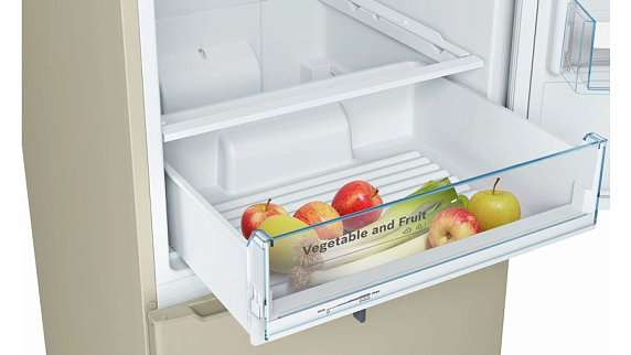 Двухкамерный холодильник Bosch KGN39VK16 выполнен в бежевом цвете. Регулировка и контроль температуры с точностью до 1 градуса Цельсия позволит подобрать оптимальную температуру для хранения любых продуктов. Технология NoFrost предотвращает образование льда внутри прибора — это означает, что размораживать устройство не нужно. Комфорт пользования повышают возможность перевешивания двери и удобные ручки.