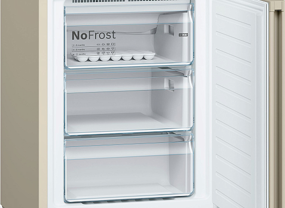 Этот девайс относится к серии Serie | 4. Он выполнен в бежевом цвете, что позволяет ему гармонично вписаться в любой интерьер кухни. Оснащен современной системой No Frost, которая предотвращает образование инея и льда внутри изобретения. Это значительно облегчает его эксплуатацию и уход за ним. Внутренний объем устройства составляет 279 литров, что обеспечивает достаточно места для хранения большого количества продуктов.