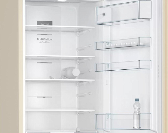 Двухкамерный холодильник Bosch KGN39VK25R благодаря системе Multi Airflow направляет потоки охлажденного воздуха на все уровни. Это поддерживает постоянную температуру холодильного и морозильного отделений. Устройство имеет яркое боковое LED освещение и точечную подсветку зон свежести: вы всегда видите полки, на которые кладете продукты. Простая панель управления позволит регулировать температуру с максимальной точностью. Благодаря классу энергоэффективности A+ вы сэкономите бюджет на счетах за электричество.