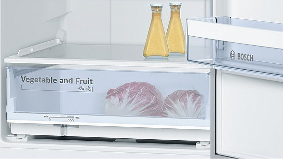 Особенности: настройка температуры около 0°C, ящик для хранения овощей/фруктов с 2 уровнями влажности, 2 ящика для хранения рыбы/мяса.