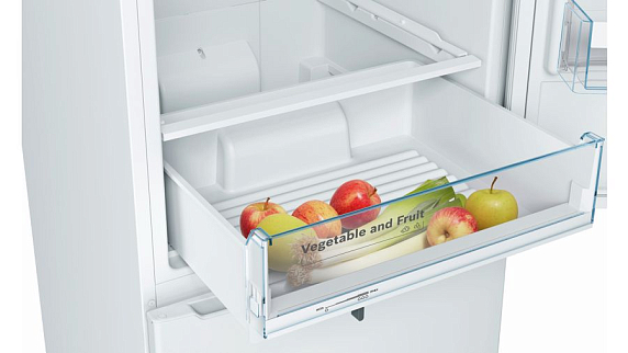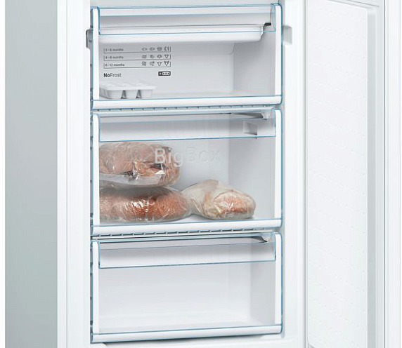Данная модель предусматривает зону свежести для овощей и фруктов, которая позволяет сохранять свежесть, например, клубники и салата, надолго. Cистема NoFrost позволяет не размораживать устройство за весь период пользования. Прибор, при отсутствии питания, способен удерживать холод в течении 15 часов.