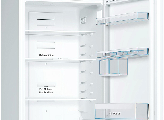 Данный холодильник от Bosch идеально подходит для современной кухни. Сенсорные элементы управления делают его использование удобным и интуитивно понятным, а наличие дисплея позволяет в режиме реального времени контролировать и регулировать температуру в холодильной и морозильной камерах. Особенностью данной модели является система NoFrost, которая предотвращает образование инея и обледенения, что значительно упрощает уход за прибором и позволяет экономить энергию. Кроме того, внутреннее пространство прибора организовано таким образом, что позволяет максимально эффективно использовать его объем.