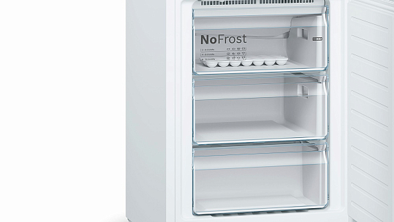 Этот аппарат от Bosch оснащен современными сенсорными элементами управления, что делает его использование удобным и интуитивно понятным. На присутствующем дисплее отображается информация о текущих параметрах работы устройства, что позволяет контролировать и при необходимости корректировать их. Устройство обладает вместительным отделением для свежих продуктов и просторным морозильником. Энергоэффективность класса «А» гарантирует экономичность использования, а система «No Frost» предотвращает образование инея и обледенения, что значительно упрощает уход за холодильником.