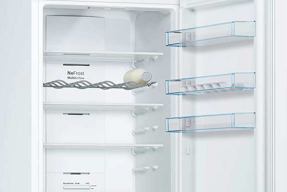 Двухкамерный холодильник Bosch KGN39VWEQ оснащен полкой быстрого доступа EasyAccess, она выдвигается из холодильной камеры. Система хранения продуктов VitaFresh сохраняет свежесть при 0°C температуре. Светодиодное освещение не создает бликов и не требует постоянной замены.
