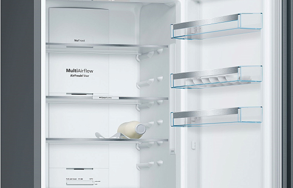 Загружать и доставать продукты из холодильника проще благодаря выдвижным полкам EasyAccess. Свежесть обеспечивает специальный угольный фильтр AirFresh, который абсорбирует и нейтрализует неприятные запахи и бактерии в течение всего срока службы прибора.
