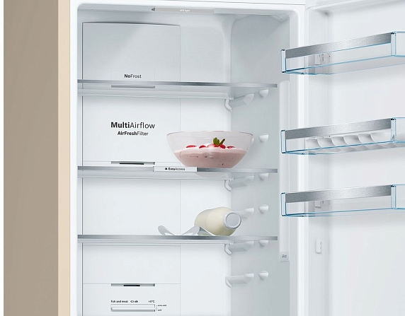 Фильтр Airfresh, предусмотренный в приборе, встроен в систему вентиляции и препятствует смешиванию запахов, чтобы продукты сохраняли свой естественный вкус и аромат. Благодаря технологии MultiAirflow колебания температуры в холодильном отделении минимальны, что, например, помогает сохранить свежесть готовых блюд. Удобное управление позволяет быстро настроить параметры работы устройства.