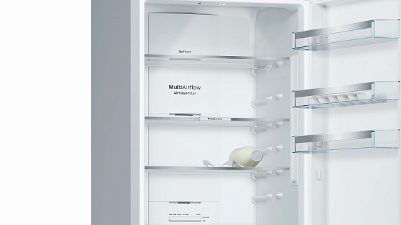 Антибактериальный угольный фильтр AirFresh встроен в систему вентиляции и нейтрализует неприятные запахи и бактерии в течение всего срока эксплуатации. Благодаря классу энергопотребления A++, прибор потребляет на 20% меньше, чем устройства А класса, что позволяет экономить электроэнергию. Функция SuperFreezing не только быстро остудит новые продукты, но и не даст размораживаться тем, что уже помещены в морозильную камеру.