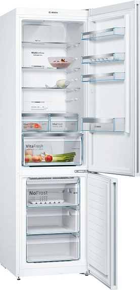 Одним из представителей Serie | 4 является двухкамерный аппарат в классическом белом цвете. Этот прибор отличается стильным дизайном, включающим стеклянное покрытие дверцы, которое придает ему современный и элегантный вид. Оно также обеспечивает дополнительную защиту от царапин и ударов, что увеличивает долговечность устройства. Это идеальное решение для тех, кто ценит качество, функциональность и эстетику в одном флаконе. Этот девайс имеет впечатляющие размеры: высота составляет 203 см, ширина — 60 см, а глубина — 66 см. Это делает его достаточно вместительным для большой семьи или тех, кто любит запасаться продуктами. Однако, несмотря на такие габариты, вес модели составляет всего 76.6 кг, что облегчает его установку и перенос при необходимости.