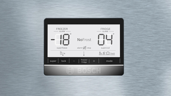 Холодильник Bosch KGN86AI32U относится к классу энергопотребления E (старое обозначение A++), что гарантирует его энергоэффективность. Уровень шума составляет всего 40 дБ, что делает его почти незаметным даже в тишине. В случае открытия двери или другой ошибки на дисплее появляется световая и звуковая сигнализация. Для защиты от маленьких детей предусмотрена специальная функция блокировки.