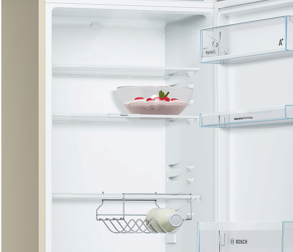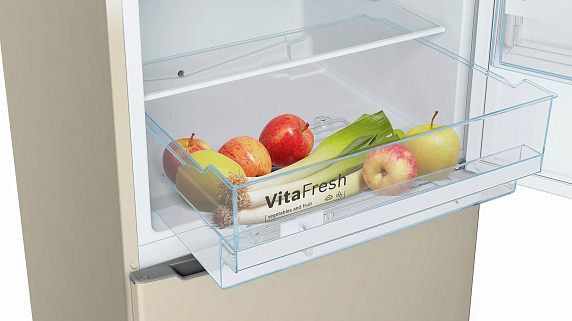 Двухкамерный холодильник Bosch KGV36XK2A бежевого цвета с нижней морозильной камерой — удобная экономичная модель, которая относится к классу эффективности А+. Благодаря системе охлаждения LowFrost образование льда в морозильной камере минимальное. Технология NatureCool поддерживает в холодильнике оптимальную влажность, что позволяет надолго сохранить свежесть овощей и фруктов.