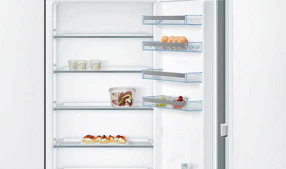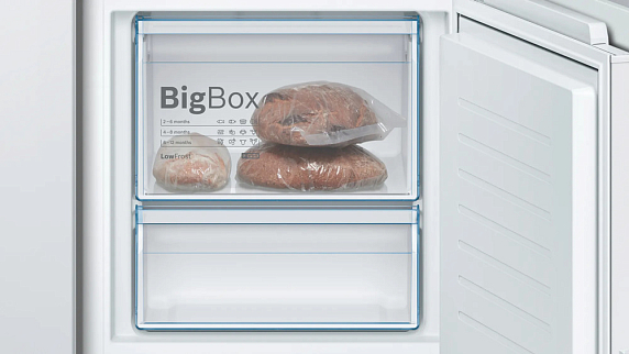 Встраиваемый двухкамерный холодильник Bosch KIV87VS30M оснащен светодиодным освещении, оно не требует постоянной замены и равномерно освещает все полки прибора. Специальные датчики FreshSense отслеживают температуру внешней среды и внутренней и исходя из этого регулируют баланс. Функция SuperFreezing поддерживает холод при добавлении новый продуктов.
