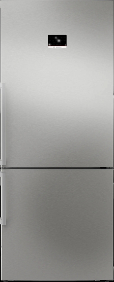 Двухкамерный холодильник Bosch KGP76AIC0N представлен в цвете нержавеющей стали, он подчёркивает премиальную направленность модели Serie 8 и объединяет изящную внешность с продуманной эргономикой. Вертикальная накладная ручка плавно вписывается в минималистичный фасад, а возможность перенавешивания дверцы и дверной упор справа дают свободу при планировке кухонного пространства. Чёткие линии, матовая поверхность и аккуратные сенсорные органы управления создают впечатление современного прибора, который станет визуальным центром интерьера без лишних деталей. На панели расположен информативный дисплей, позволяющий быстро задать параметры и отслеживать состояние без необходимости открывать камеры.