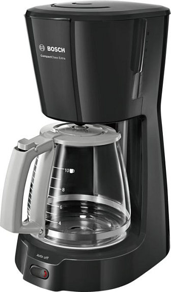 Капельная кофеварка Bosch TKA 3A033 оборудована стеклянным кофейником на 10 больших или 15 маленьких чашек.