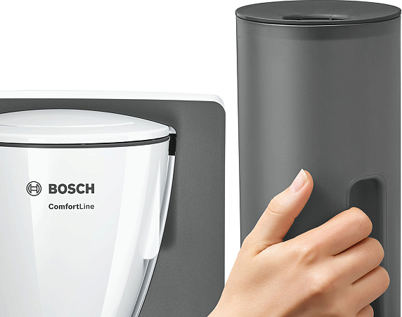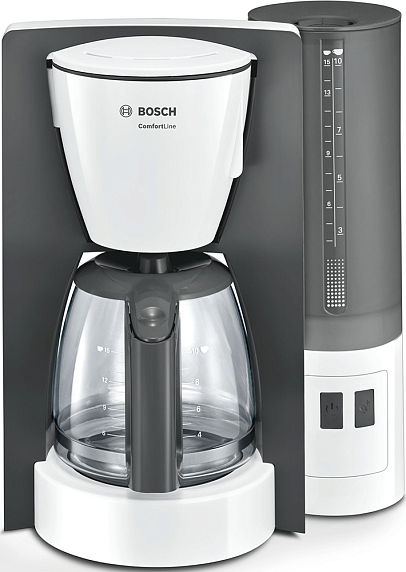 Капельная кофеварка Bosch TKA 6A041 оборудована удобной емкостью для воды и кофейником на 10 больших или 15 маленьких чашек.