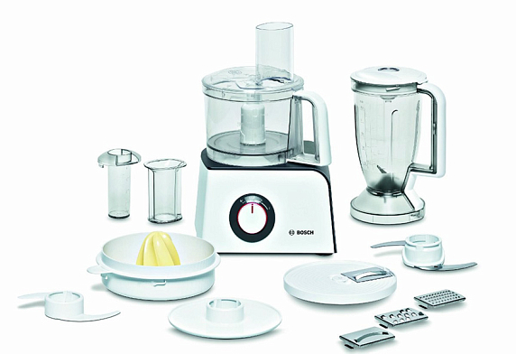 Кухонный комбайн Bosch MCM 4100 представлен в классическом белом цвете. Модель имеет стильный дизайн и станет украшением современной кухни. Идеальное соотношение цены и качества важный аргумент в пользу покупки. Максимальная мощность составляет 800 Вт. Корпус и чаша выполнены из пластика, устойчивого к механическим воздействиям и не содержащего в своем составе вредный бисфенол-А. Объемы блендера равны соответственно 2,3 и 1,25 л. Электронное управление отличается простотой, надежностью и осуществляется с помощью переключателей. В базовый комплект входят: соковыжималка, блендер, универсальный нож-измельчитель, двухсторонний диск-шинковка (крупная/мелкая), насадка для теста. Гарантия от производителя составляет 12 месяцев с даты приобретения.