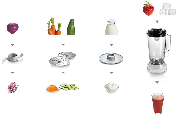 Кухонный комбайн Bosch MCM3201B — компактный кухонный прибор с ножом MultiLevel6, который благодаря 6 лезвиям измельчает как твердые, так мягкие ингредиенты.