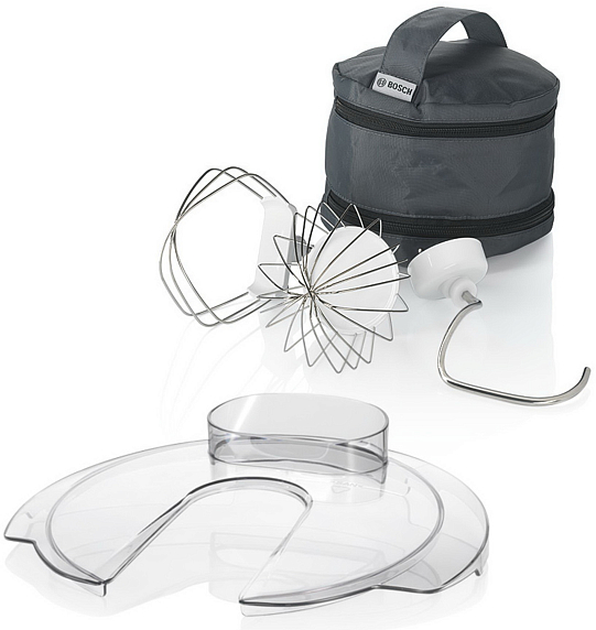 Кухонный комбайн Bosch MUM 54Y00 предназначен для замешивания теста, быстрого взбивания крема и сливок. Большая чаша из нержавеющей стали 3,9 л позволяет замесить до 2 кг плотного теста. Функция автоматической парковки фиксирует насадки в удобном положении для снятия. Венчики и крюк для теста можно положить в удобную сумку, которая хранится в чаше комбайна.