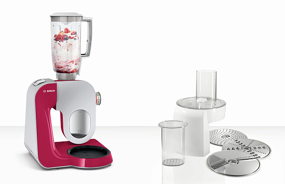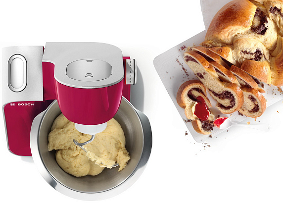 Кухонный комбайн Bosch MUM 58420 — мощная машина для приготовления салатов и выпечки. Планетарное вращение кондитерских насадок (венчик для взбивания, венчик для смешивания, крюк для замешивания теста) и особая форма внутренней поверхности чаши обеспечивают отличное качество замеса до 2,7 кг легкого теста или 1,9 кг дрожжевого. Универсальная резка с тремя дисками для разных типов измельчения, шинковки и нарезки позволит приготовить салаты и ингредиенты для блюд.