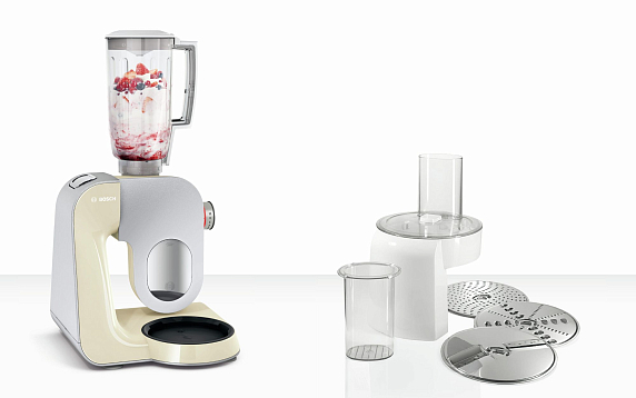 Кухонный комбайн Bosch MUM 58920 — многофункциональная модель с шестью насадками.
