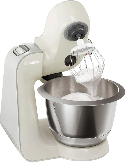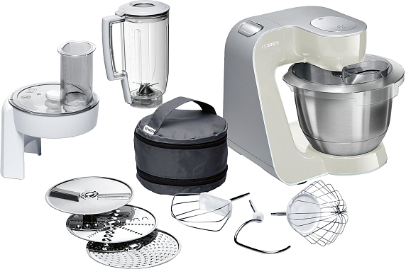 Мощная универсальная кухонная машина Bosch MUM 58L20 поможет приготовить различные кондитерские изделия, выпечку, салаты и ингредиенты для блюд. Вместительная чаша и кондитерские насадки (венчики и крюк для теста) позволяют замешивать до 1,9 кг дрожжевого или 2,7 кг легкого теста. Терка для овощей, мелкая терка для орехов, шоколада и сыра, шинковка дают возможность приготовить салаты и ингредиенты для блюд. Насадка-блендер поможет измельчить ягоды, приготовить смузи, пюре и мороженое.