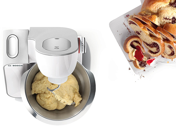 Кухонный комбайн Bosch MUM58224 представлен в белом цвете и оснащен вместительной чашей из нержавеющей стали (3.9 л), в которой сразу можно замесить до 2.7 кг теста. Система EasyArmLift обеспечивает автоматическое поднятие рычага одним нажатием кнопки и гарантирует удобную смену насадок. В комплект входят 3 диска для нарезки овощей, что увеличивает комфорт эксплуатации устройства.