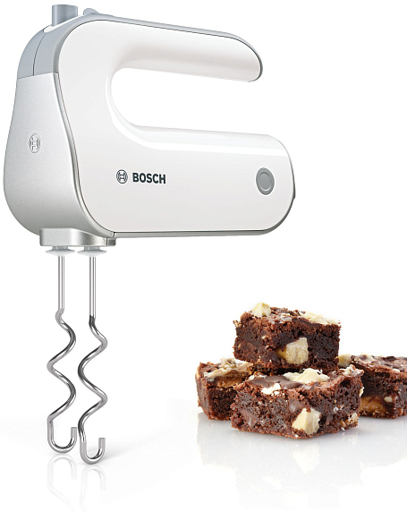 Миксер Bosch MFQ 4030 белого цвета — дизайнерская модель необычной формы.