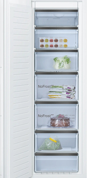 Дизайн ориентирован на минимализм и функциональность: ровные поверхности и сдержанный белый цвет позволяют прибору органично вписаться в современный интерьер, а аккуратные линии фасада подчеркивают статус техники уровня Serie 8. Комбинация тихой работы, хороших показателей замораживания и продуманной внутренней организации делает этот встроенный морозильник надёжным помощником для хранения продуктов, поддерживая свежесть, структуру и вкус замороженных заготовок.