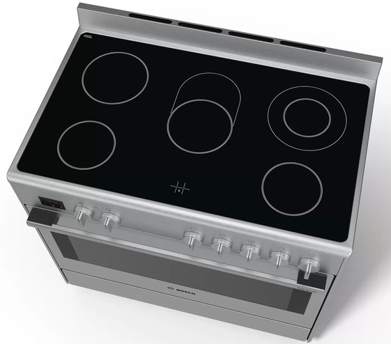 Электрическая плита Bosch HCB738357M оснащена 5 конфорками среди них имеется овальная для разных форм посуды. Удобное съемное стекло позволяет отслеживать процесс приготовления, а также его удобно чистить. Имеется дисплей на котором отображаются часы.