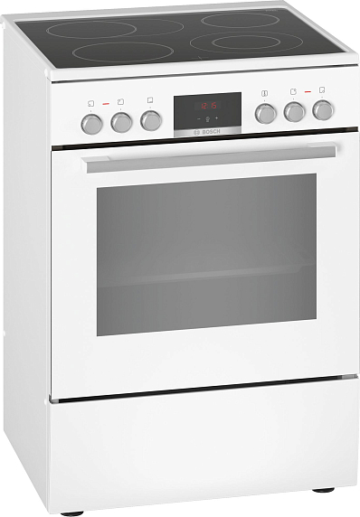 Электрическая плита Bosch HKN39B220R выполнена в белом цвете. Данная модель комплектуется четырьмя электрическими конфорками, в том числе двухконтурной и овальной, благодаря которой можно использовать такую посуду, как, например, жаровня или утятница, что расширяет кулинарные возможности. Индикаторы остаточного тепла увеличивают комфорт и безопасность эксплуатации, показывая какая из зон нагрева еще не остыла. Система EcoClean и эмаль легкой очистки максимально облегчают уход за камерой духового шкафа.