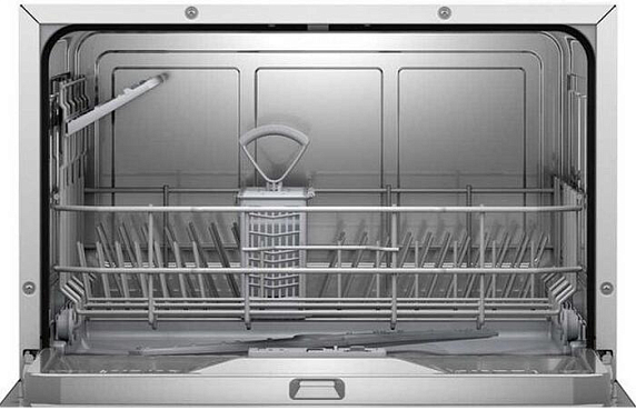Компактными называют посудомоечные машины, которые выпускаются высотой около 45 см. Они могут быть узкими (шириной 45 см) и широкими (шириной 55 см). При этом их можно устанавливать на столешницу или на специальную полку / тумбу. Главное условие — доступ к водопроводу и канализации. У таких моделей только 1 корзина для мытья и вместимость от 3 до 6 комплектов.