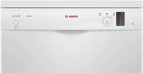 Посудомоечная машина Bosch SMS23BW01T оснащена системой ActiveWater на 5 уровнях происходит тщательная циркуляция воды она попадает даже в самые отдаленные уголки моечной камеры. Имеется полная защита от любых протечек AquaStop. На дисплее отображается время программы, управление функциями осуществляется с помощью поворотного регулятора.