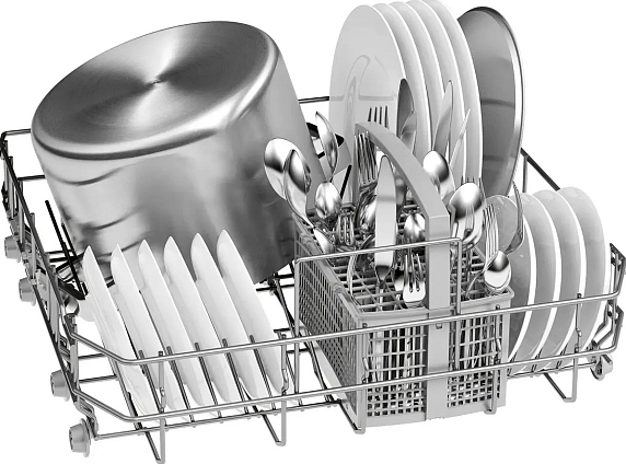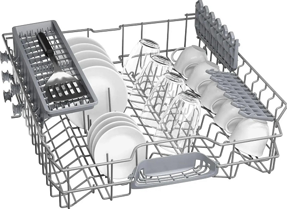 1/2 загрузки называют ещё половинной или неполной загрузкой. При обычной загрузке 10–14 комплектов с этой опцией вы сможете отмыть за один раз 6 и менее комплектов посуды. При этом подача воды идёт только в одну корзину, благодаря чему получается добиться отличного результата и сэкономить ресурсы, включая электроэнергию.